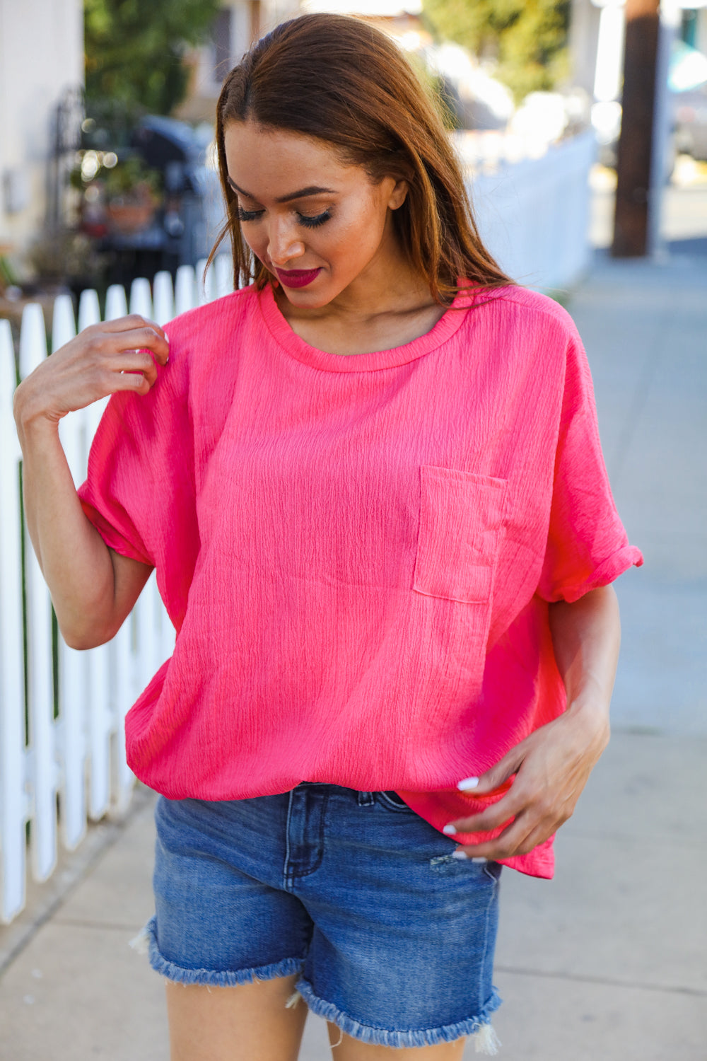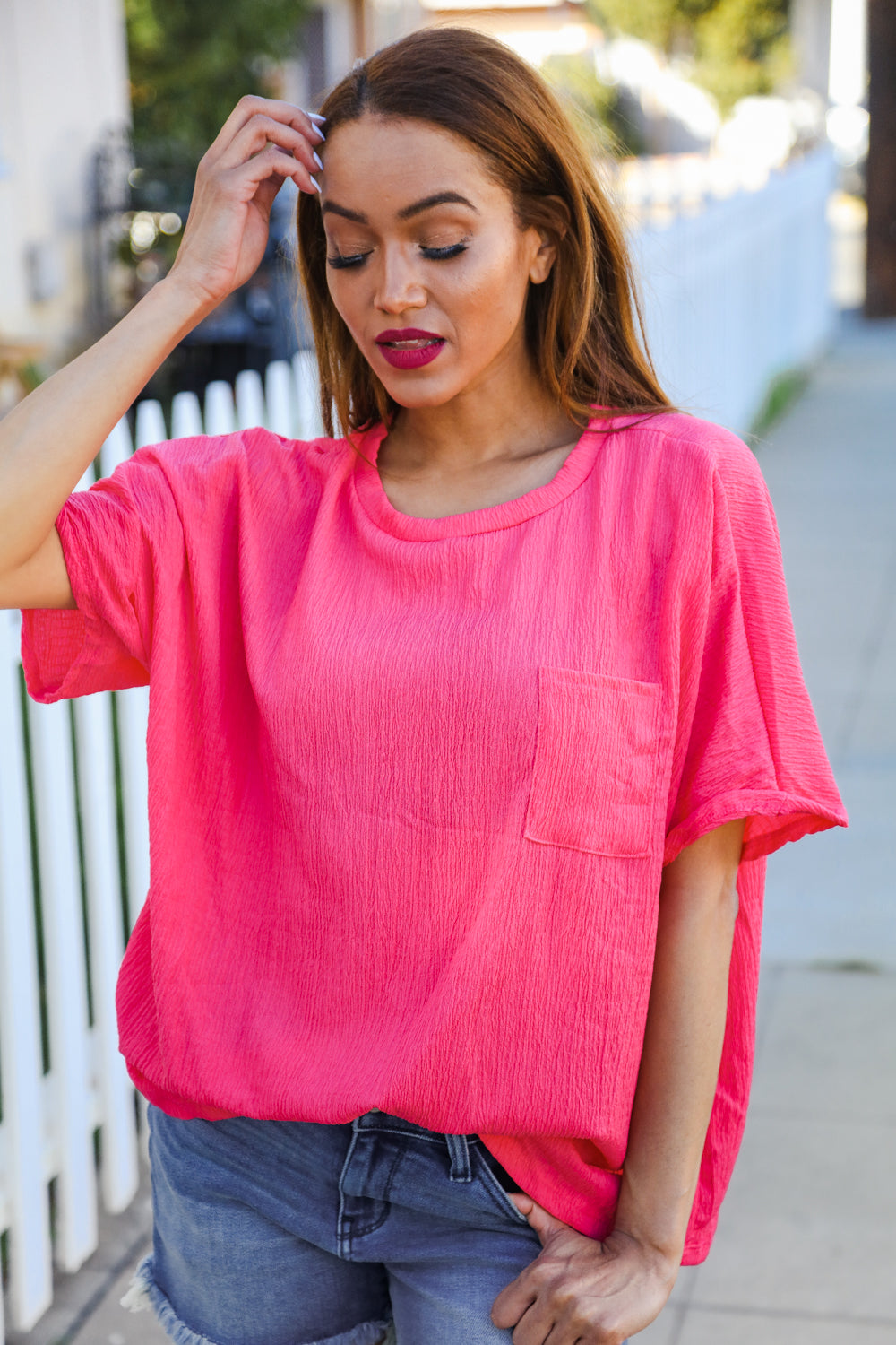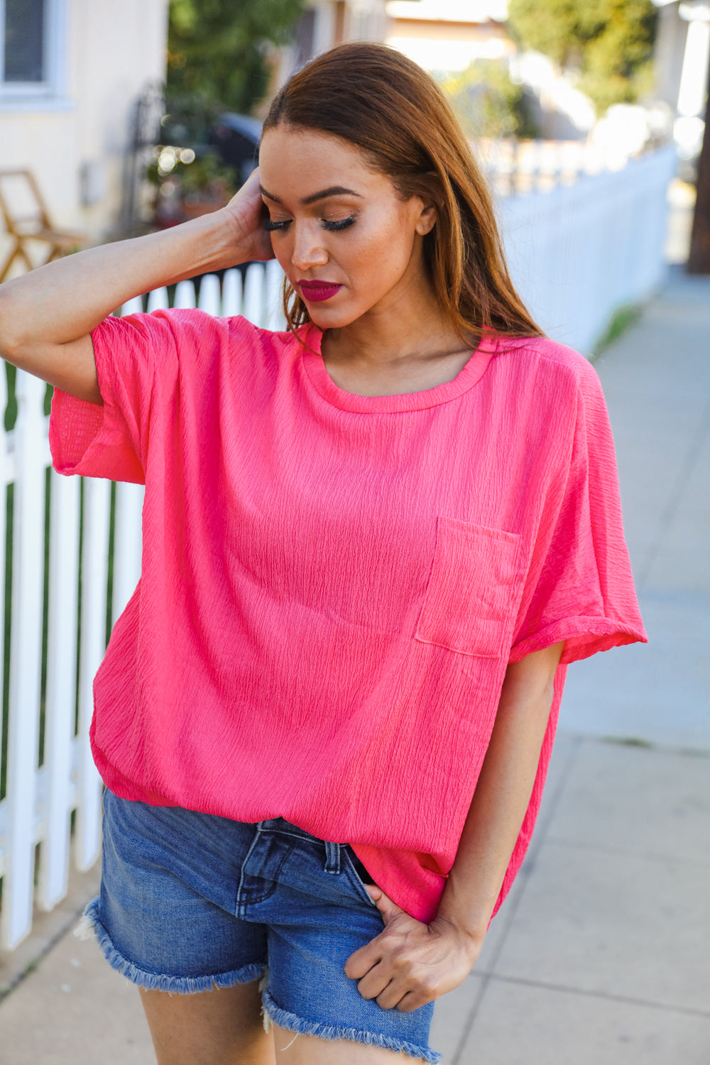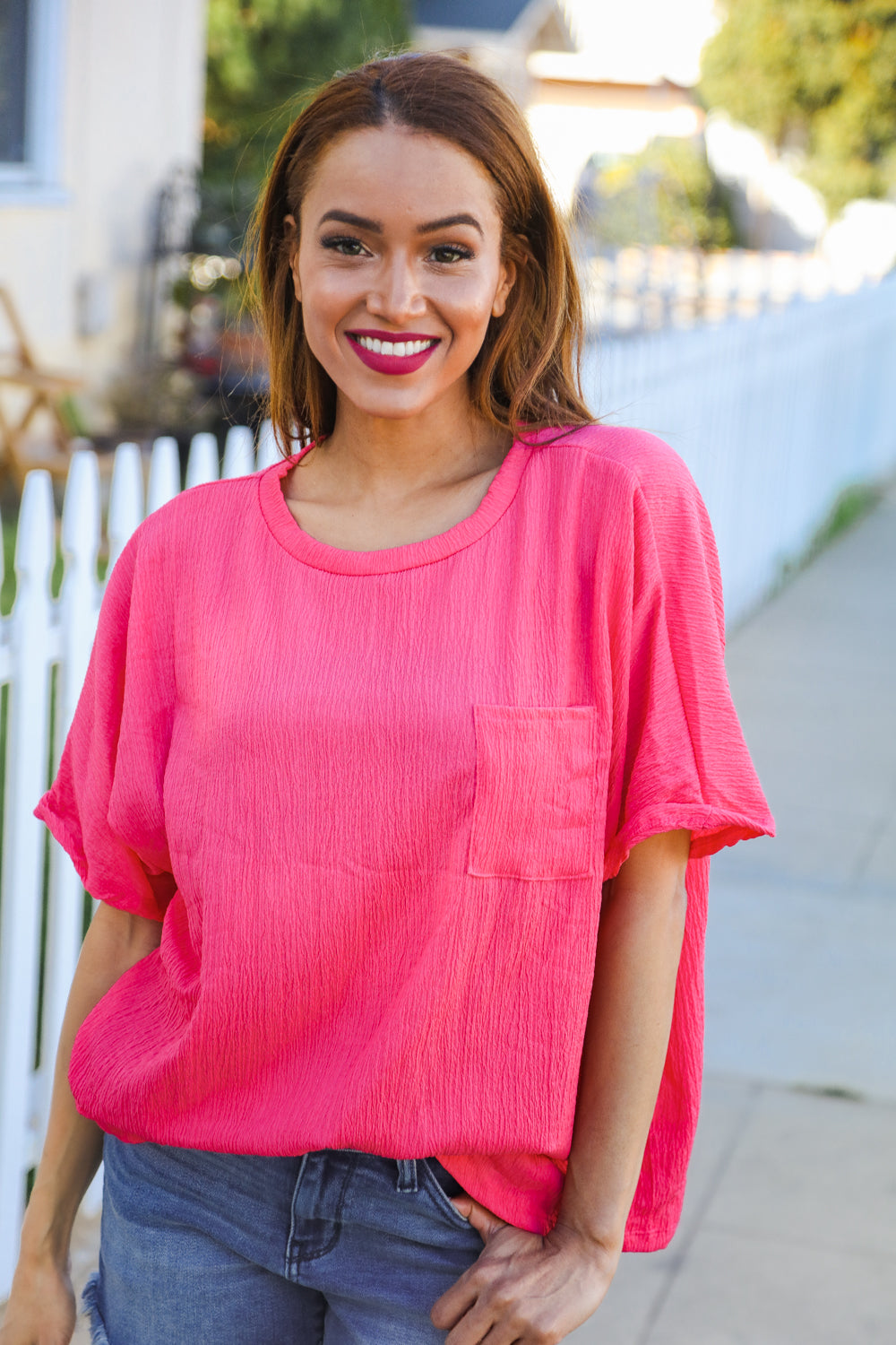 Be Bold Coral Crinkle Texture Pocketed Dolman Top