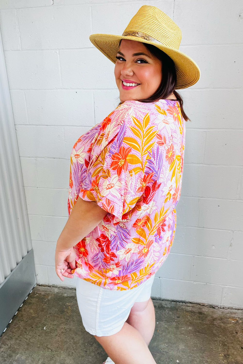 Tropical Floral Print + Banded Sleeves + V Neck + Dolman Design