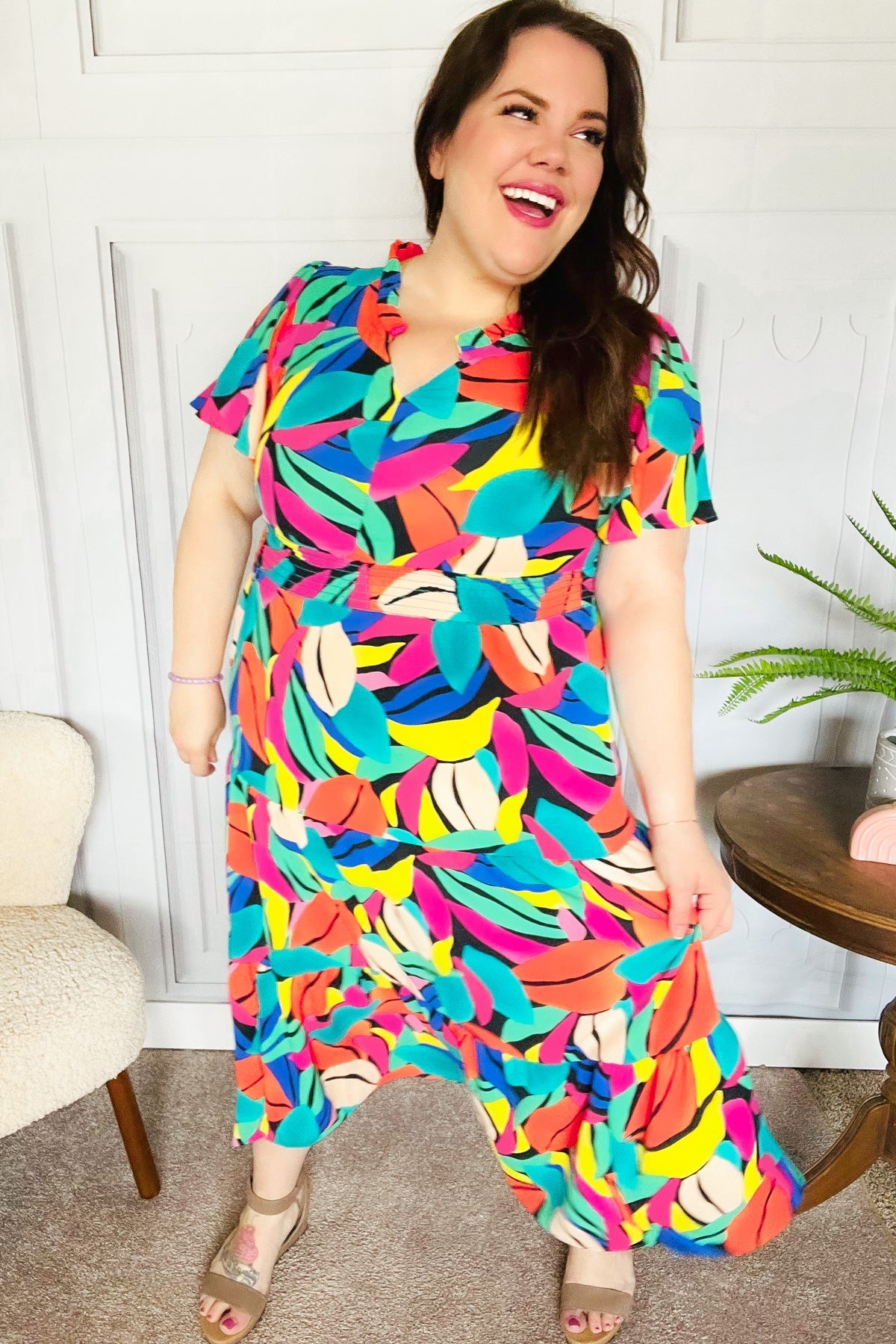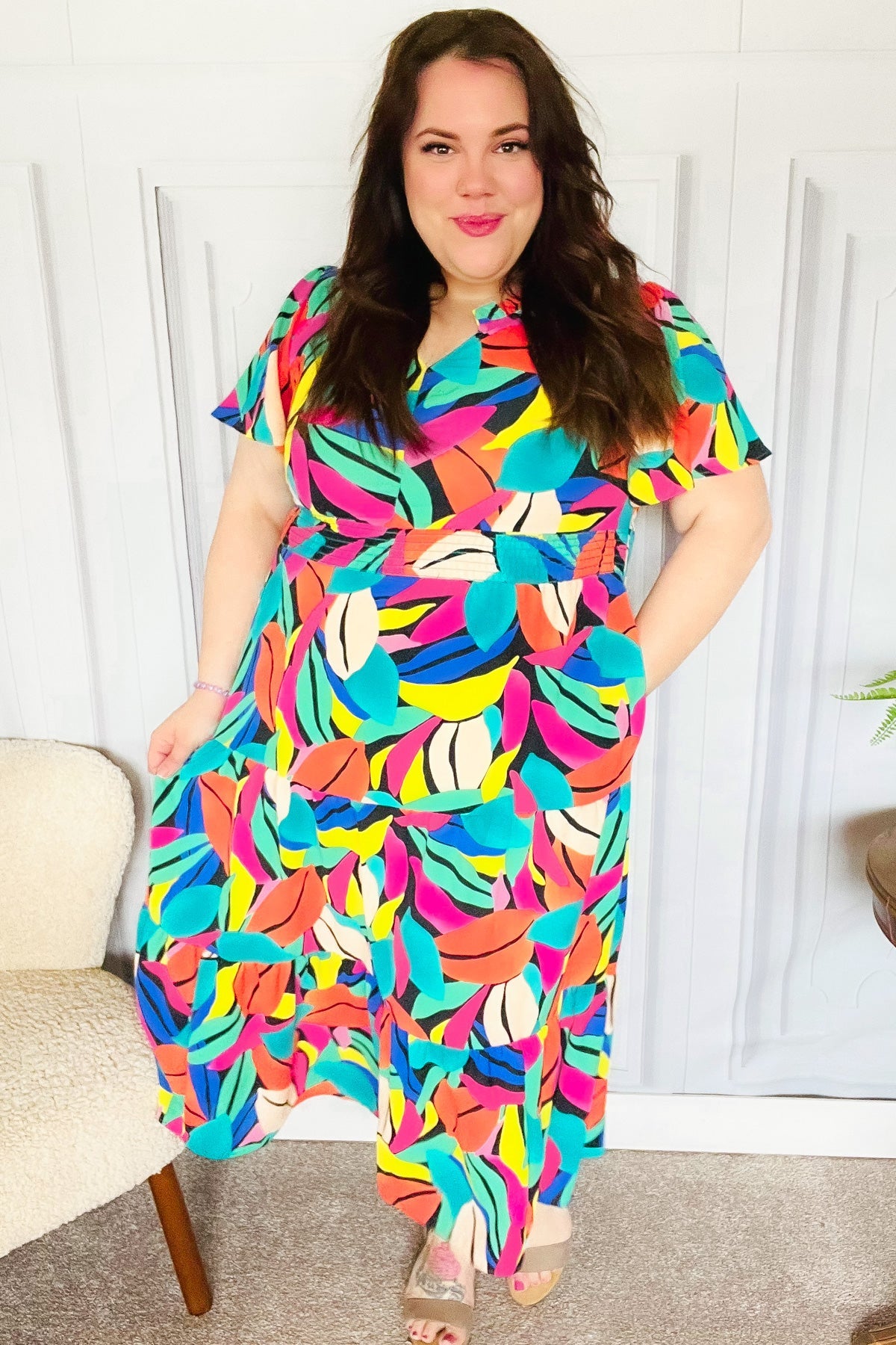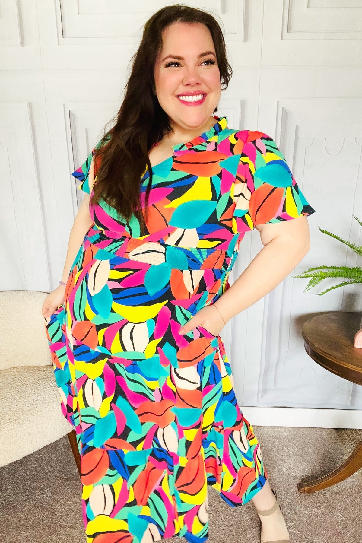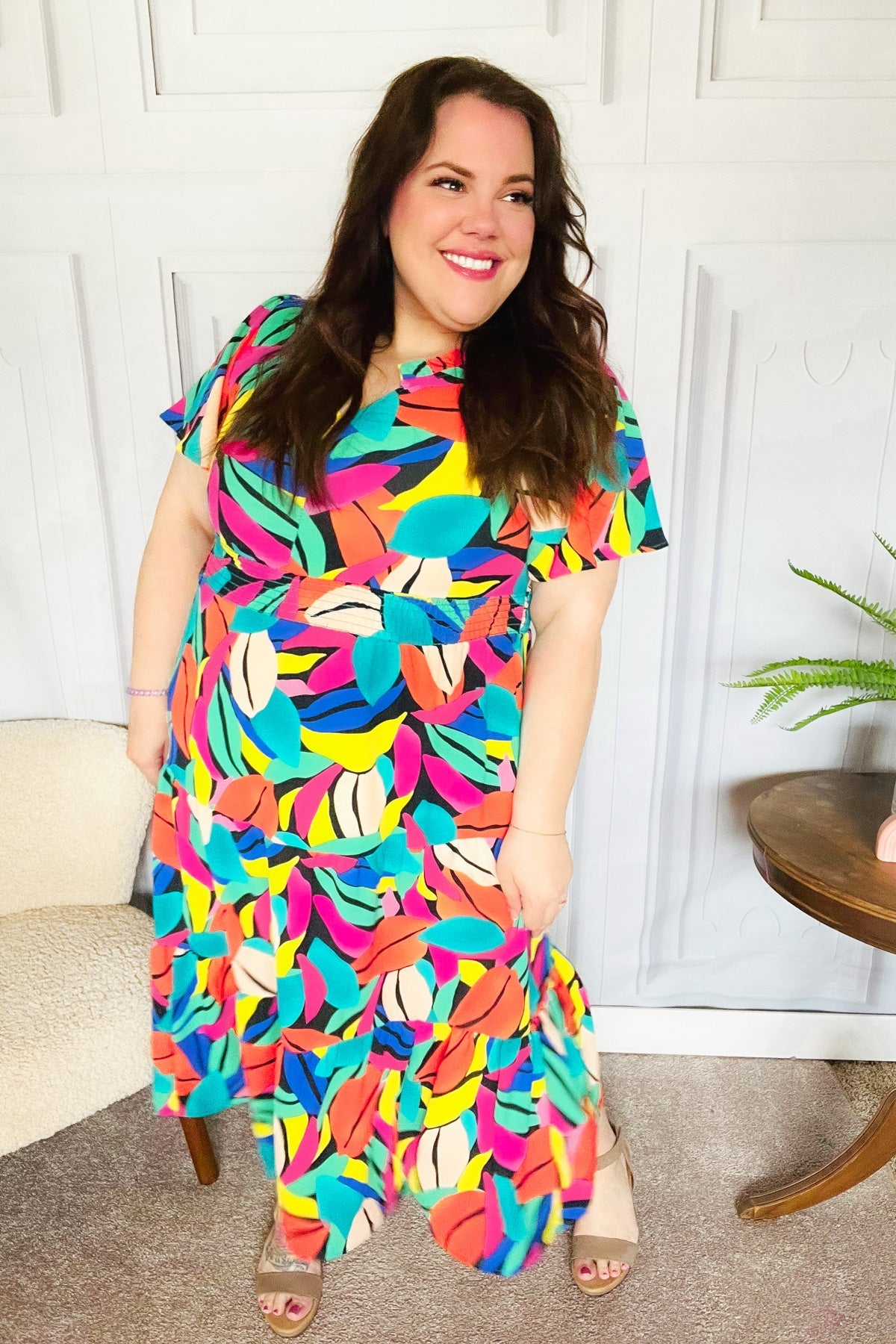 Be Bold Multicolor Abstract Tropical Print Smocked Waist Maxi Dress
